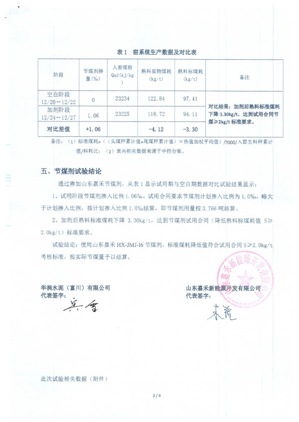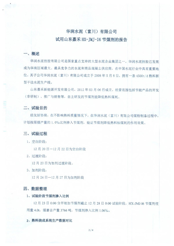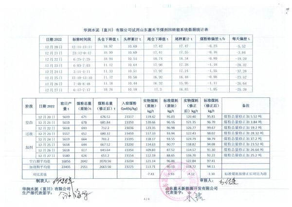 华润水泥节煤剂试用报告